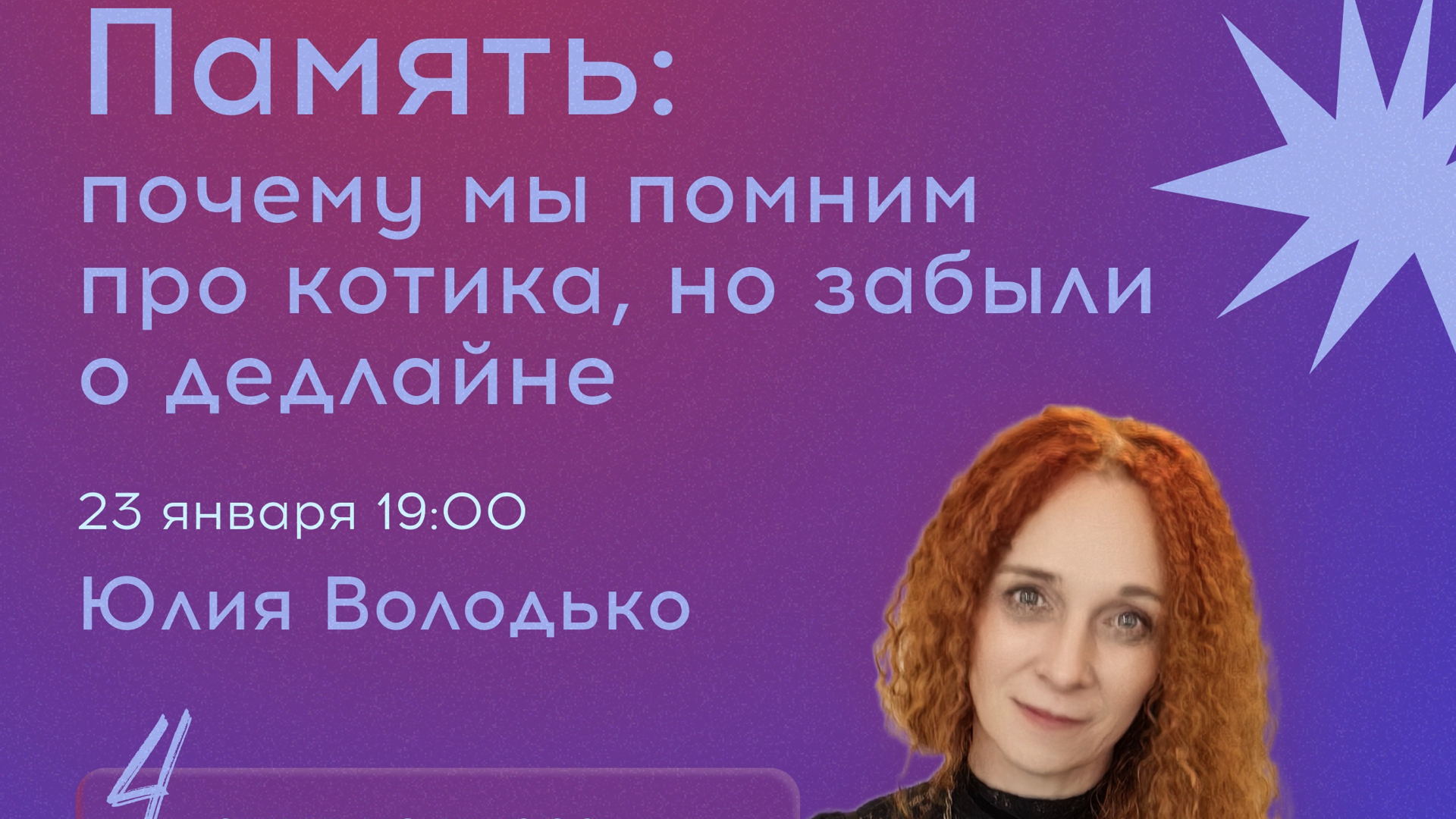 Если вам интересно, сколько видов памяти вообще существует (спойлер: много!), или когда пора бежать к врачу с забывчивостью, то приходите в пятницу 23 января в 19:00 в кофейню "Садко".